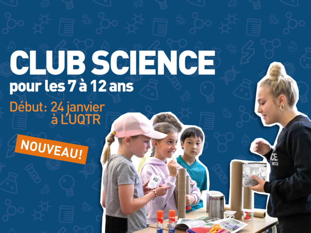 Notre nouveau Club science propose aux jeunes de 7 à 12 ans une aventure scientifique unique : robotique, technologie et expériences captivantes, réparties sur 6 demi-journées remplies de découvertes et de plaisir. – Dès le 24 janvier à l’UQTR.