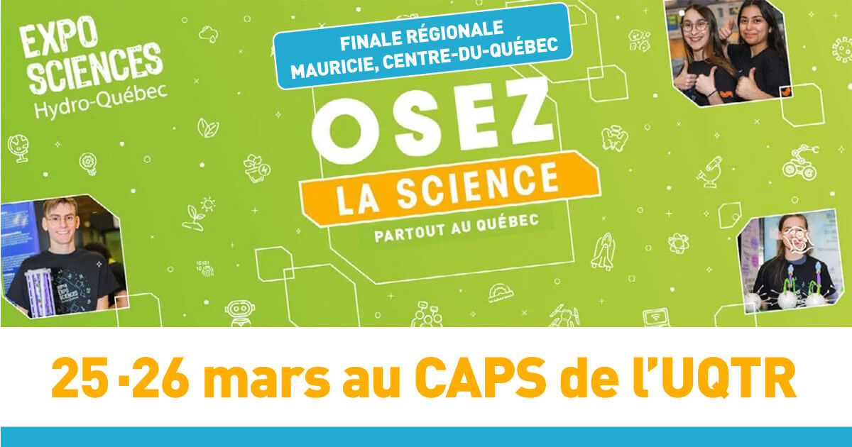 Trois-Rivières, 19 mars 2026 – Les 25 et 26 mars prochains, 44 exposants et exposantes de niveau secondaire prendront part à l’Expo-sciences Hydro-Québec, finale régionale de Mauricie, Centre-du-Québec qui se tiendra à l’Université du Québec à Trois-Rivières. C’est une invitation à vous laisser surprendre par des projets scientifiques originaux présentés par des jeunes de la région et à venir les soutenir!